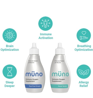 MÜNO is a treatment line of products for the professional market, from medical doctors to allied health practitioners. With its natural healing properties, whether ingested or applied to the skin, MÜNO offers a unique approach to oxygen-based healing. This innovative solution aims to provide patients with a more holistic and sustainable method of treatment. By harnessing the power of oxygen, MÜNO offers products that are not only effective but also safe for long-term use. Whether it is for breathing and brain optimization, immune support or wound healing, MÜNO has become a trusted choice for medical practitioners seeking a more natural and effective approach to healing for their patients.